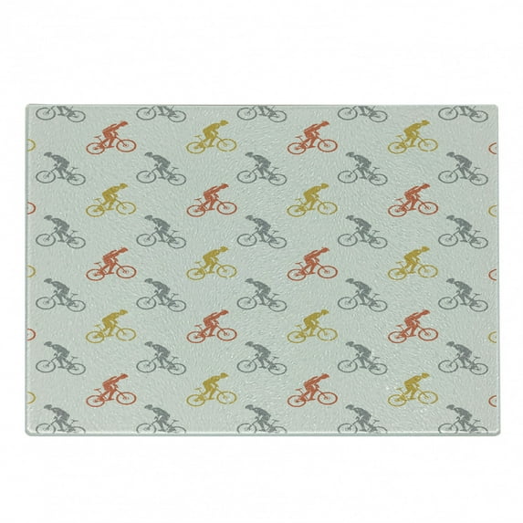 Hero image 0 of Hobby Cutting Board, Illustration of Orange Grey and Earth Yellow Tone Man on Sportive Bike, Decorative Tempered Glass Cutting and Serving Board, in 3 Sizes, by Ambesonne, 0 of 2