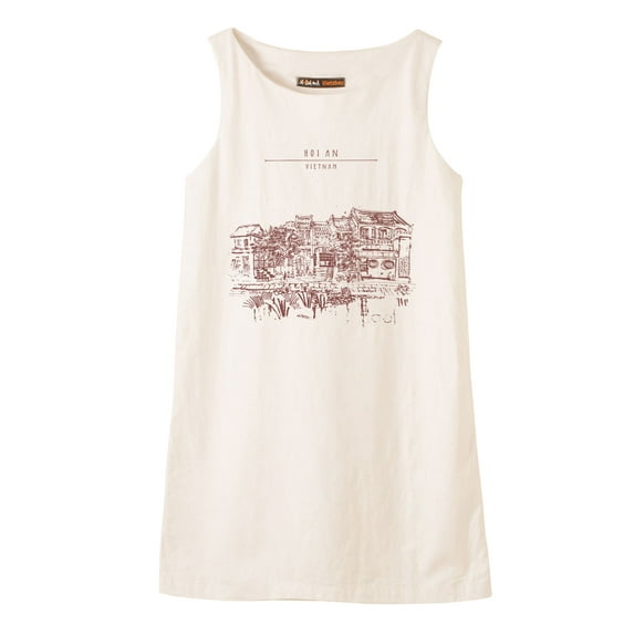 Hero image 0 of Hoi An - Vietnam-2 Printed Vintage 100% Cotton Linen Mini Shift Dress WDS_01 18, 0 of 1