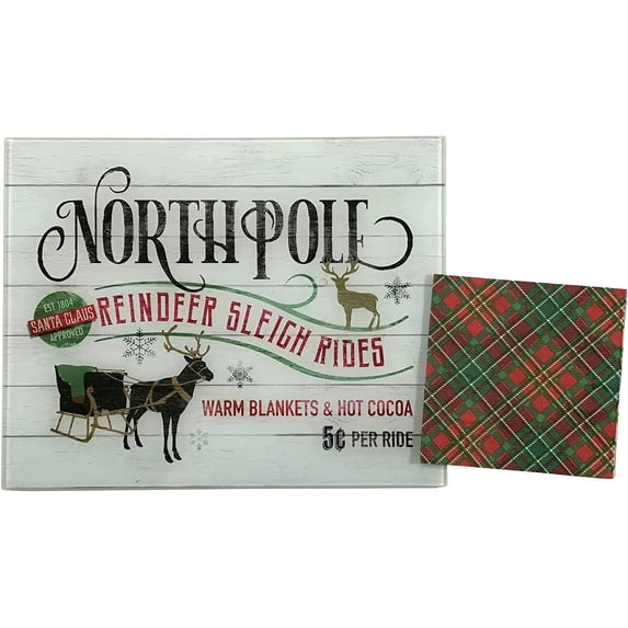 Serafina Home Holiday Christmas Glass Cutting Board: Decorative Old Fashion Reindeer Sleigh Rides (Reindeer Rides)Holiday Christmas Glass Cutting Board Decorative Old Fashion Reindeer Sleigh Rides Reindeer RidesHoliday Christmas Glass Cutting Board Traditional Rustic Noel Christmas with Plaid Border