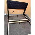 Home Design Homer Queen Button-Tufted Wingback Upholstered Panel Bed Frame with Nailhead Trim design for Adult, Black, Easy Assembly