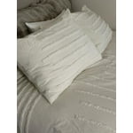 [This review was collected as part of a promotion.] Nice comforter and sham set. True to size for a queen bed. I like the cream color, it's not too yellow or too beige., but rather has a warm neutral feel. The weight of the comforter is also nice., thick but not too heavy. It's 100% cotton but the material reminds me of linen, which gives it an elevated feel. The design is modern but it fits with my overall neutral aesthetic. Overall, I'm very pleased.