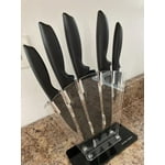 Shipping, arrives in 3+ daysKitchen Knife Set, 6 Pieces Black Stainless Steel Sharp Chef Knife with Acrylic Stand, Non-stick Coating Block Knife Set for Home Restaurant Apartment $19.99