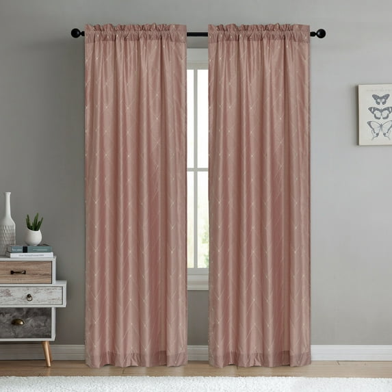 Home Soft Things 2 Piece Doris Diamond Embroidery Faux Silk Curtain set - Silver Pink - 60" x 96"