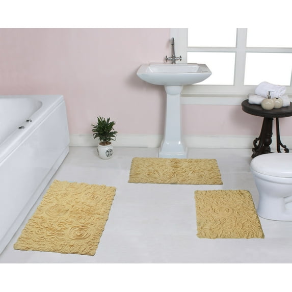 Hero image 0 of Home Weavers Bell Flower Collection 100% Cotton Non-Slip Bathroom Rug Set Machine Washable Bathroom Rug-17"x24", Bath Rug- 21"x34", Bathroom Rug- 24"x40", Yellow Color 3 Piece Bath Rug set, 0 of 9