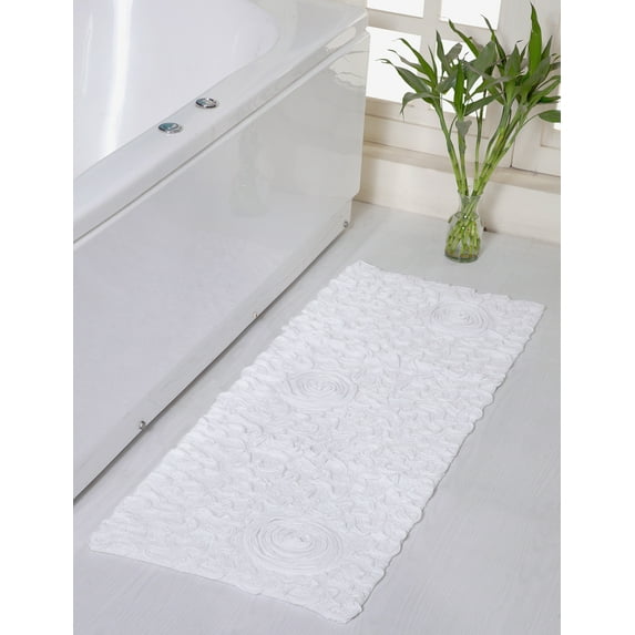 Hero image 0 of Home Weavers Bell Flower Collection Bathroom Rug 100% Cotton Tufted Bath Rugs, Soft Absorbent Bath Rugs, Non-Slip Bath Mats, Machine Washable, Bath Matsand Tub, 21"x54" Runner, White, 0 of 9
