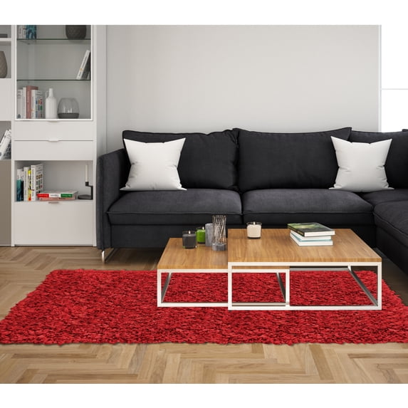 Home Weavers Jersey Shaggy Living Room Rug, Machine Washable Area Rugs, Rug For Living Room, Non Slip Runner Rugs, Kitchen Runner, Soft Foldable Indoor Floor Carpet, Easy To Clean, 5' x 8', Red