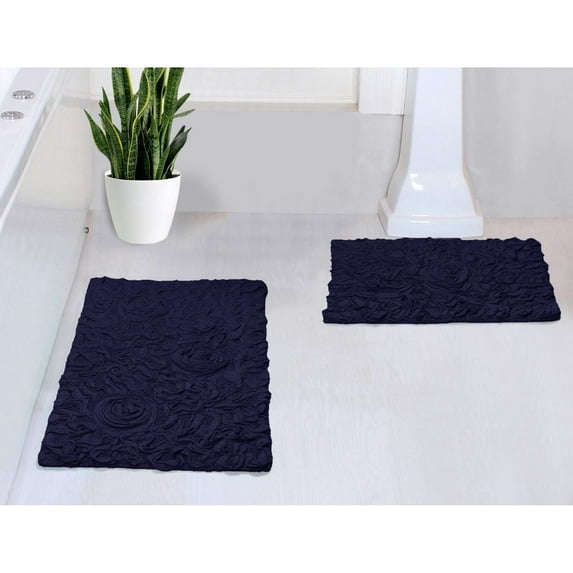 Hero image 0 of Home Weavers Modesto Bath Rug 100% Cotton Non-Slip Bathroom Rug Set Machine Washable Bathroom Rug-17"x24", Bath Rug- 21"x34", Navy Color 2 Piece Bath Rug set, 0 of 7