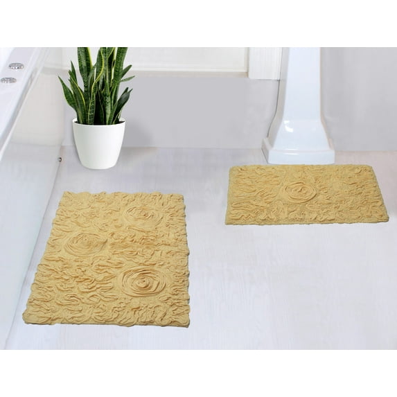 Home Weavers Modesto Bath Rug 100% Cotton Non-Slip Bathroom Rug Set Machine Washable Bathroom Rug-17"x24", Bath Rug- 21"x34", Yellow Color 2 Piece Bath Rug set