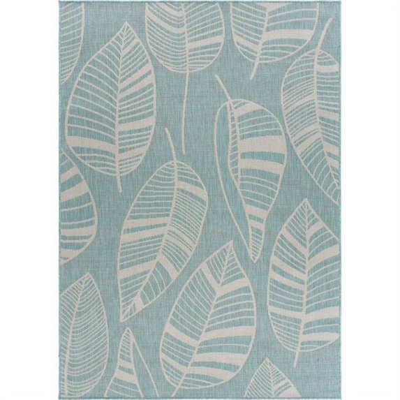 8’ x 10’ Teal Leaves Indoor Outdoor Area Rug