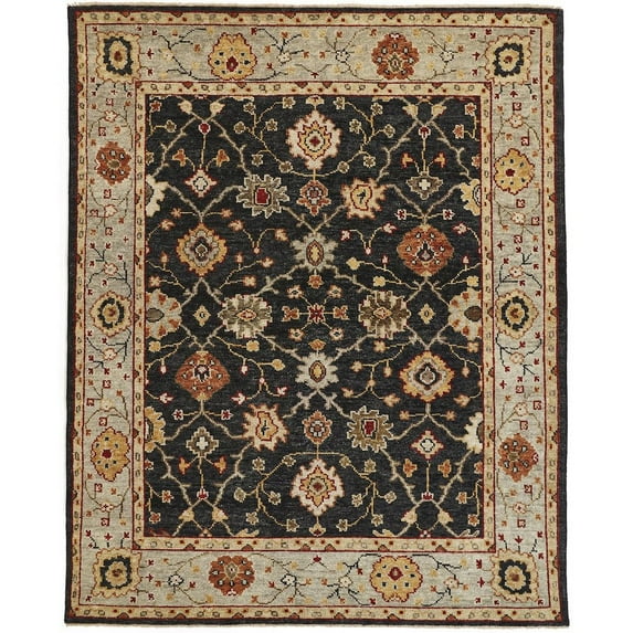 Set an inviting tone in your space with this 2' x 3' black gold and gray wool floral hand knotted stain resistant area rug with fringe. This rectangle shaped rug features a floral design in black gold and gray to give it visual interest. A classic shape marries with good looking design for your space Ideal for spaces with kids and pets, this rug is stain resistant to help repel stains and spilled liquids. Tassel ends bring a timeless and fashionable look to your interior. Crafted by skilled artisans, this hand knotted rug is genuine and unique. No two will be exactly alike. Area Rugs help to give warmth and sense of home to your space. 0.28" H x 24" W x 36" D