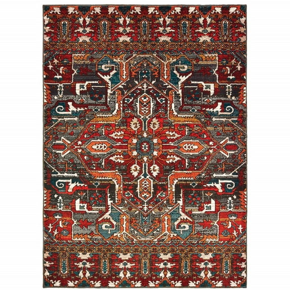 HomeRoots Red Orange Blue And Grey Southwestern Power Loom Stain Resistant Area Rug