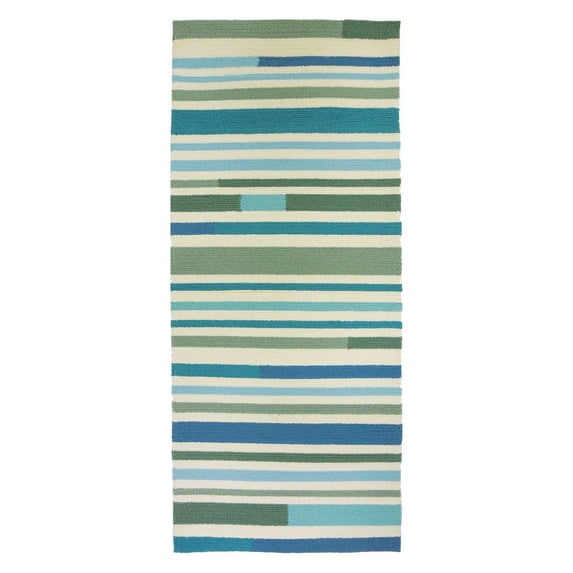 Colors inspired by the sand and sea come to life in the striped design of the Homefires Sea Breeze Stripes Indoor/Outdoor Area Rug. The horizontal orientation of the stripes can make a narrow space feel more expansive, and the hand-hooked polypropylene pile can easily endure the heavy foot traffic common in hallways and entryways. With its plush, soft pile, the floor covering is equally ideal for indoor and outdoor living spaces where you often travel barefoot. The rug is fade-resistant, so the colors will remain vivid even when you place the rug in indoor and outdoor areas that receive a lot of sun. Choose from available size options.