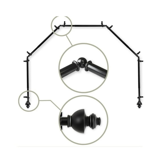 Hero image 0 of Homestock Suburban Soiree 13/16 Sided Bay Window Single Curtain Rod, Black - Corner Curtain Rods, Corner Window Curtain Rods, 5 Side Curtain Rods, Corner Drapery Rods, 0 of 4