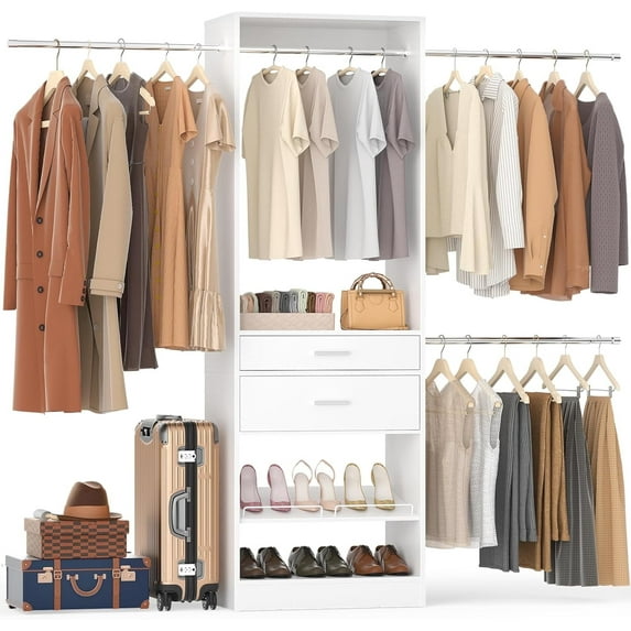 15 out of 5 Stars. 1 reviewsShipping, arrives in 3+ daysHomieasy Freestanding Closet Organizer System with Wood Drawer, 4 Cubby Storage & Hanging Rods - 25''W x 80''H Tower Wardrobe for Walk-In Closets, White Oak $119.99 Was $169.99