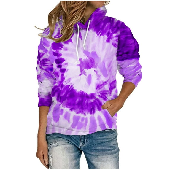 Hero image 0 of Hoodies for Women Long Sleeve Tie-Dye Hoodies for Women Plus Size Casual Workout Sweatshirts Elastic Unisex Drawstring Fashion Hoodies with Pocket, 0 of 4