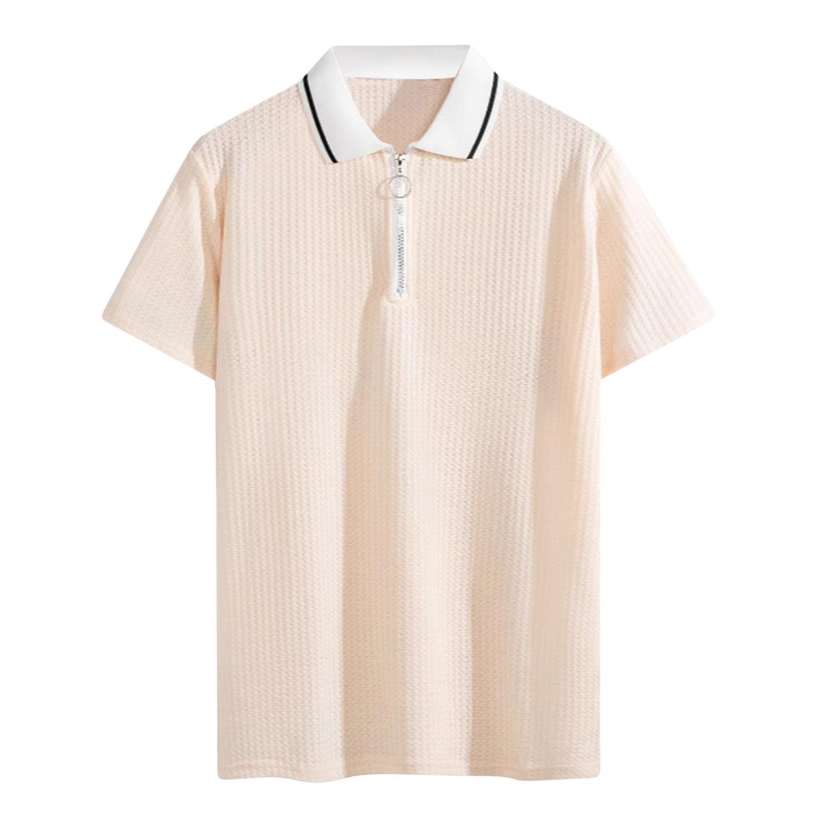 Hero image 0 of Hot days, bold styles YLSDY Men's Knit Quarter Zipper Button Collared Shirts Short Sleeve Texture Lightweight Golf Shirts Casual Fashion Lapel Collar Shirt Beige XXL, 0 of 5