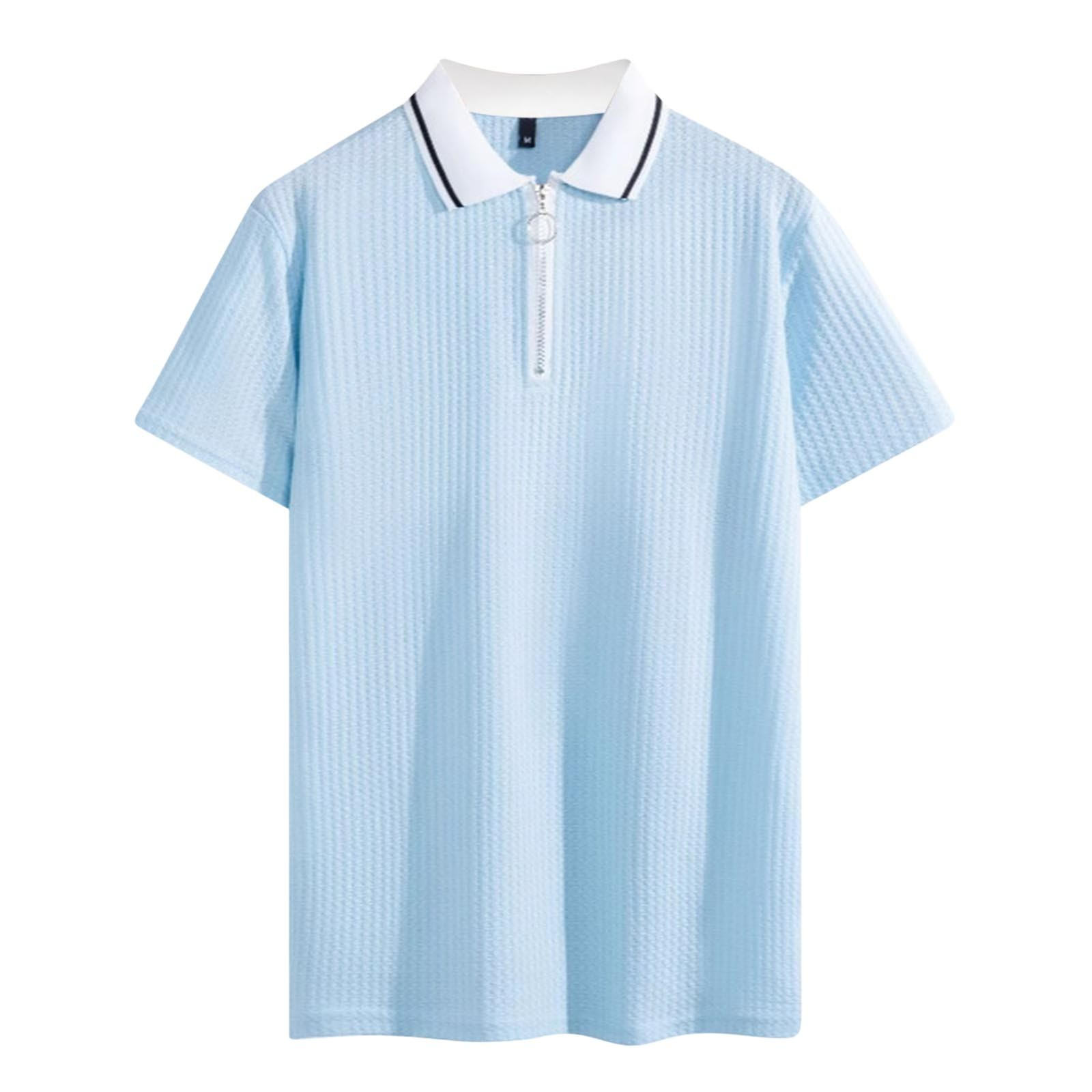 Hot days, bold styles YLSDY Men's Knit Quarter Zipper Button Collared Shirts Short Sleeve Texture Lightweight Golf Shirts Casual Fashion Lapel Collar Shirt Sky Blue M