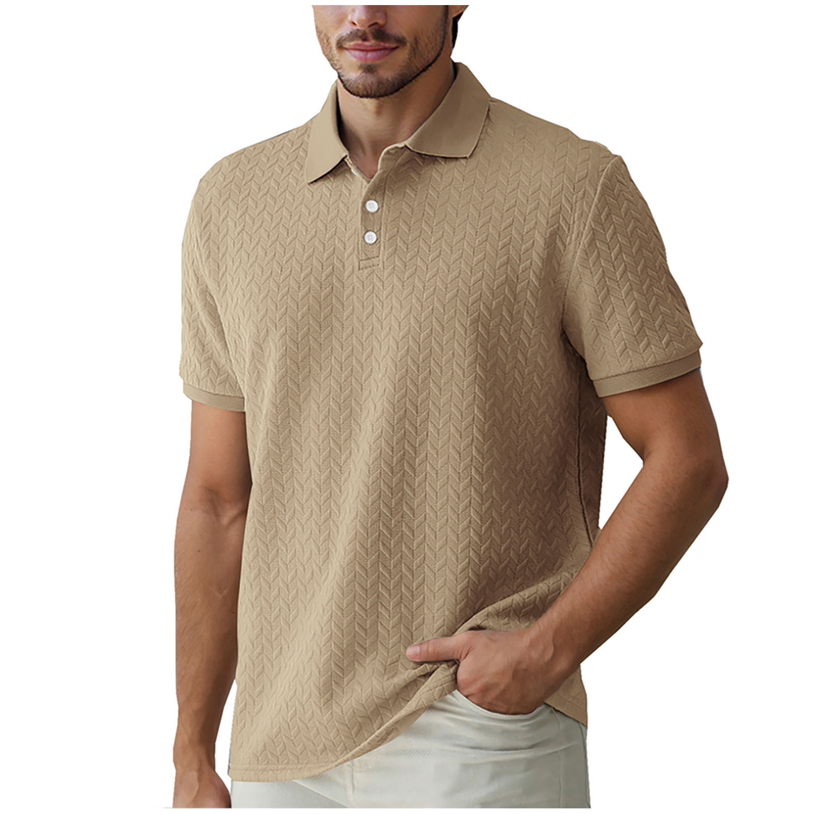Hero image 0 of Hot days, bold styles YLSDY Men's Button Collared Shirts Textured Short Sleeve Golf Shirt Openwork Casual Cuban Geometric Jacquard T-Shirt Khaki L, 0 of 8