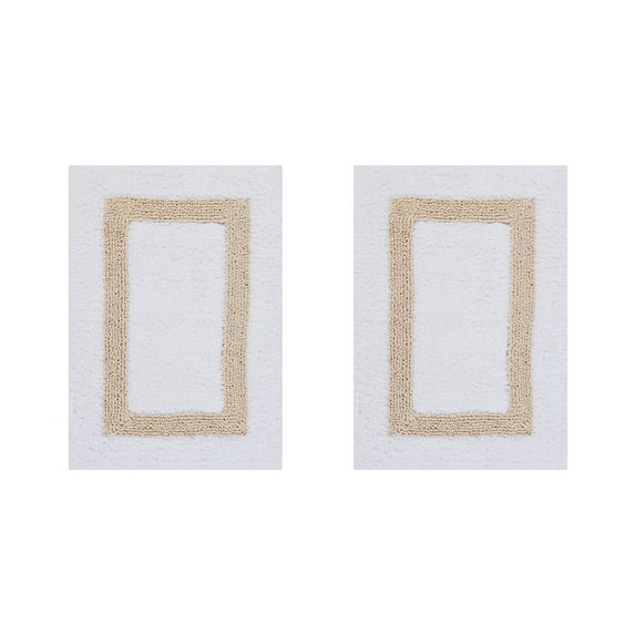 Hero image 0 of Better Trends 2 Piece Bathroom Rugs Set 100% Cotton Water Absorbent & Reversible Extra Soft Tufted Bath Rug, Machine Washable for Bathroom Floor Decor, 17" x 24" Hotel Collection - White/Sand, 0 of 6