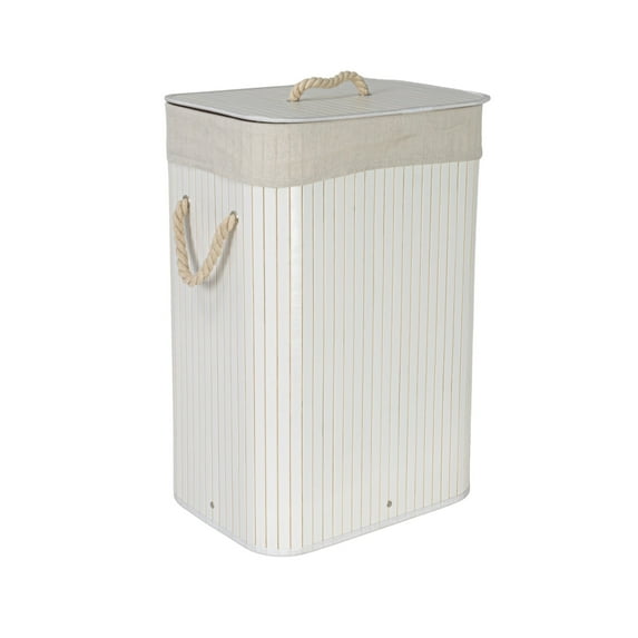 Hero image 0 of Household Essentials Bamboo Laundry Hamper with Rope Handles, Lid and Removable Machine Washable Laundry Bag, 19-Gallons, White, 0 of 12