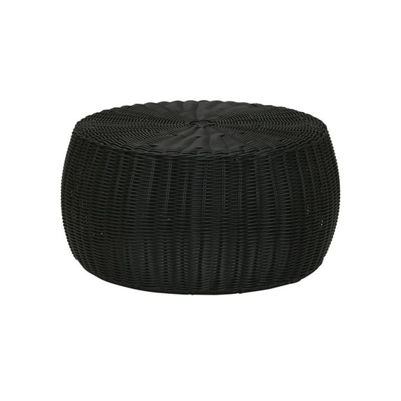 Household Essentials Handwoven Resin Storage Stool Ottoman, Black