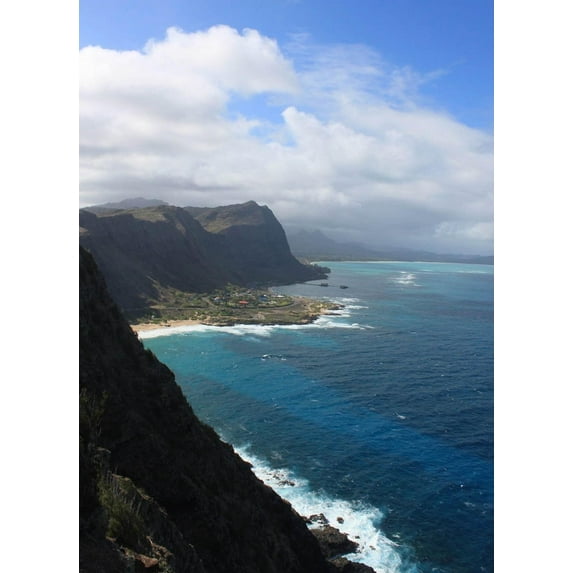 Add a little slice of Heaven to your home! This, three in the series of Hike to Heaven - this one vertical, are terrific scenes that will great wall decor pieces. This fantastic mountain cliffside ocean scene with cloudy sky is available on our removable and reusable, adhesive-backed polyester fabric wall decal material in the following sizes: 17"x24", 26"x36", 34.5"x48" or 43.5"x60"(pictured). All of Wallhogs prints are not produced until ordered to ensure you receive the freshest materials as opposed to some faded print stored in a warehouse for months or years. We also digitally print all orders using an 8-color process to ensure unmatched color quality and detail.