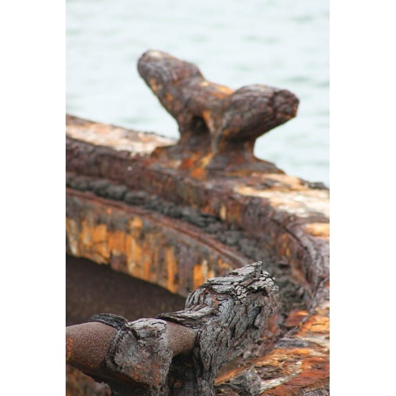 This image is from a serious piece of history - one of the ships sank at Pearl Harbor. This rusted tie-off image is available on Wallhogs removable and reusable, adhesive-backed polyester fabric wall decal material in the following sizes: 16"x24", 24"x36", 32"x48"(pictured), 40"x60" or 48"x72". You can be assured to received the freshest materials as all of Wallhogs prints are digital-print-on-demand, meaning not produced until ordered, and are printed using 8-color printers to ensure you receive unmatched color quality and detail.