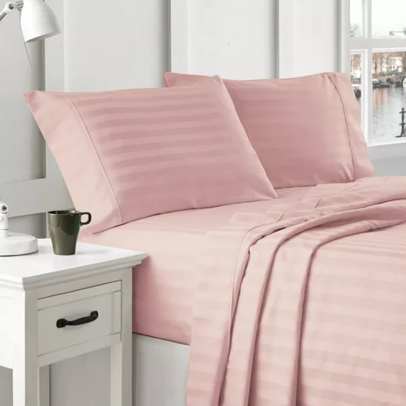 Huba Homes Brielle Home 300 Thread Count 100% Cotton Dobby Striped Sheets Collection full Blush