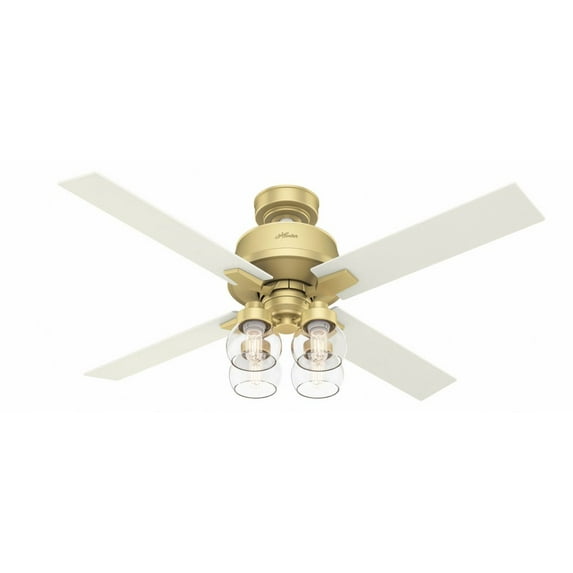 12 out of 5 Stars. 1 reviewsSave withShipping, arrives in 2 daysHunter 44 inch Indoor Ceiling Fan with LED Light - Ceiling Fan for Bedroom, Living Room, or Kitchen, Standard Mount, Wall Control, 4 Blades, Includes Bulb - Hepburn 52313, Modern Brass $329.99