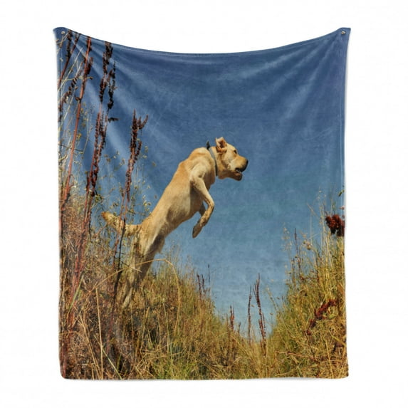 Hunting Soft Flannel Fleece Blanket, Purebred Labrador Retriever Jumping in a Field Blue Sky Rural Outdoors Photograph, Cozy Plush for Indoor and Outdoor Use, 50" x 60", Multicolor, by AmbesonneHunting Soft Flannel Fleece Blanket Purebred Labrador Retriever Jumping Field Blue Sky Rural Outdoors Photograph Cozy Plush Indoor Outdoor Use 50 x 6Hunting Soft Flannel Fleece Blanket Purebred Labrador Retriever Jumping Field Blue Sky Rural Outdoors Photograph Cozy Plush Indoor Outdoor Use 50 x 7Hunting Soft Flannel Fleece Blanket Purebred Labrador Retriever Jumping Field Blue Sky Rural Outdoors Photograph Cozy Plush Indoor Outdoor Use 70 x 9Hunting Soft Flannel Fleece Blanket Purebred Labrador Retriever Jumping Field Blue Sky Rural Outdoors Photograph Cozy Plush Indoor Outdoor Use 60 x 8