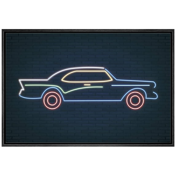 Hero image 0 of IDEA4WALL Framed Canvas Art Wall Decor Classic Blue and Yellow Sport Cruiser Transportation Cars Digital Art Pop Art Chic 3D Comic Neon for Dorm Home Office - 24"x36", 0 of 4