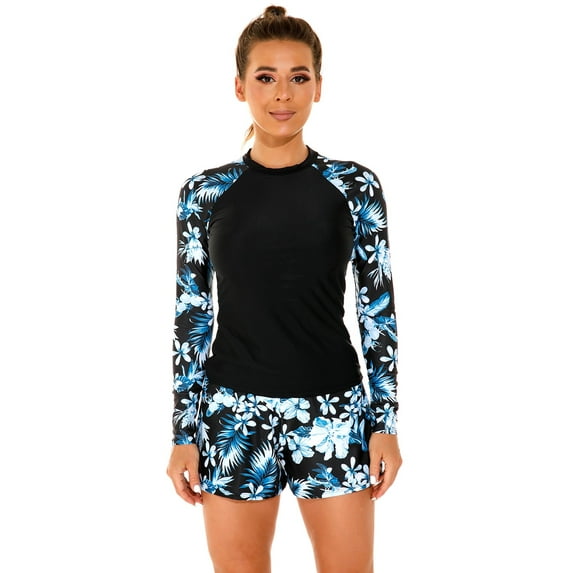 Hero image 0 of IDOPIP Women 2 PC Rash Guard Long Sleeve Swimsuits Swim Shirt with Shorts Set Surf Bathing Suits, 0 of 7