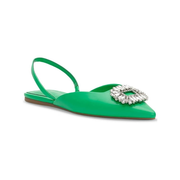 INC Womens Melicity Faux Leather Rhinestone SlingbacksINC Womens Melicity Faux Leather Rhinestone SlingbacksINC Womens Green Embellished Melicity Pointy Toe Slip On Dress Flats Shoes 7 M