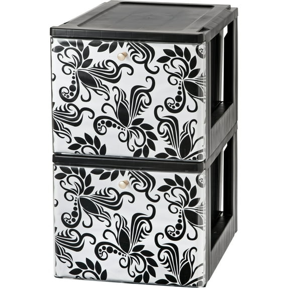 Hero image 0 of IRIS Stacking File Storage Drawer with Design, Black, 0 of 5
