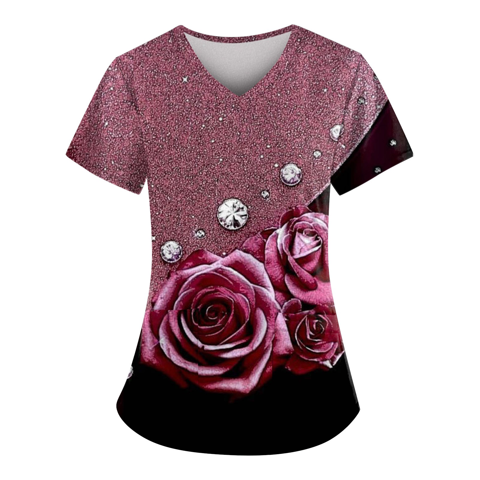 IYYVV Comfort Fit Stretch Women's Plus Size V-neck Scrub Top Fashion Printed Working Uniform Nurse Uniform Scrubs Pockets Scrub Tops Watermelon Red S