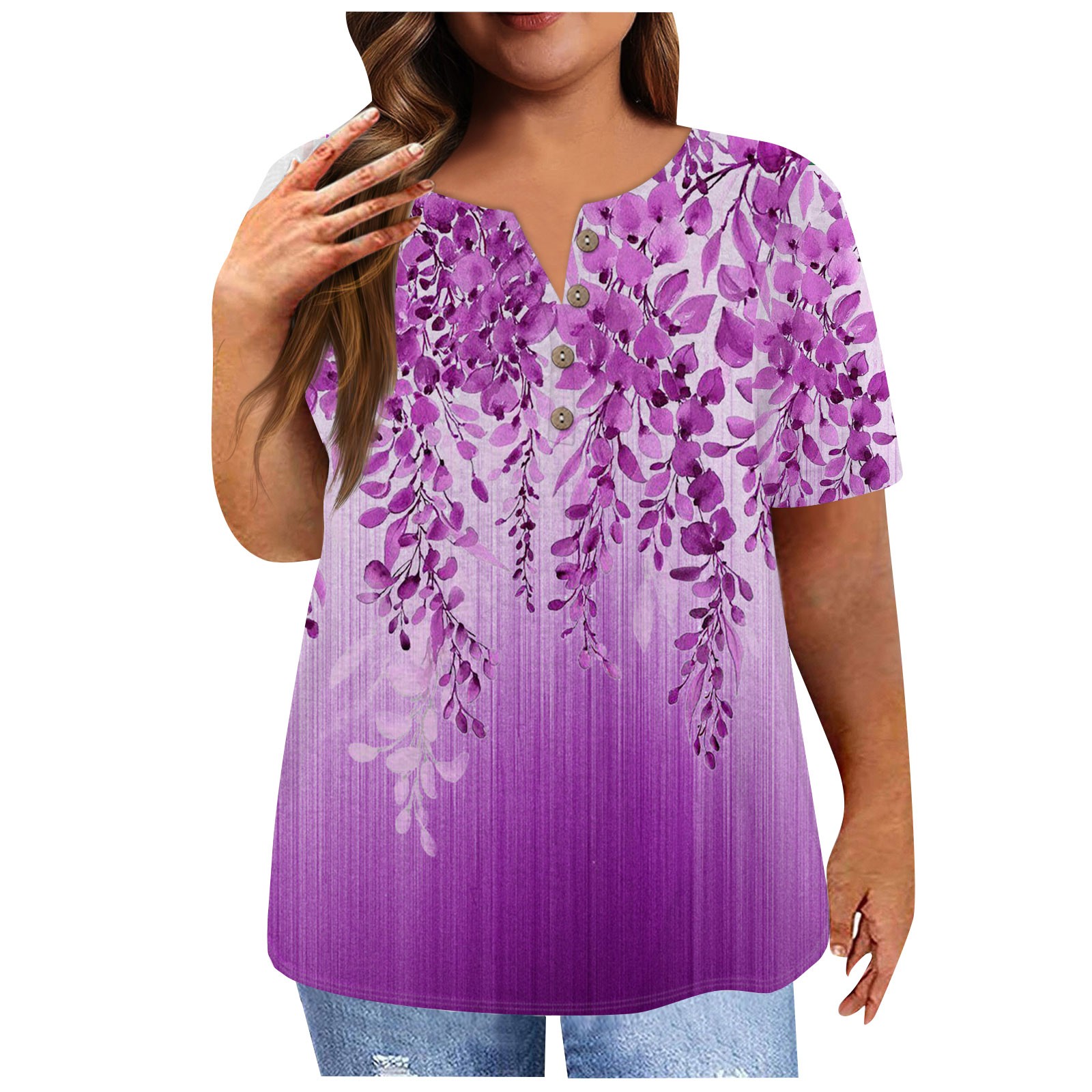Hero image 0 of IYYVV Women Plus Size Short Sleeve Tops Casual Summer Button Down V Neck Floral Print T Shirt 2024 Tunic Shirts For Women Women Clothing Boho Womens Fall Fashion Hot Pink 4XL, 0 of 6