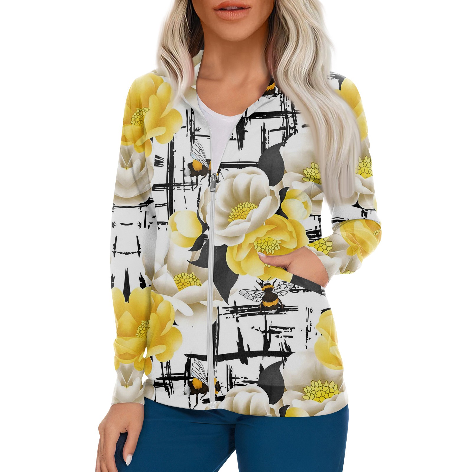 IYYVV Women's Warm Up Scrubs Jacket Zip Front Long Sleeve Scrub Jackets Nurse Uniform Yellow XL