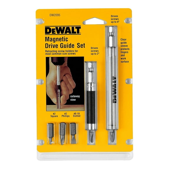 - Set includes: Square/Phillips/flat head bits, 2-inch magnetic drive guide, 4-inch magnetic drive guide