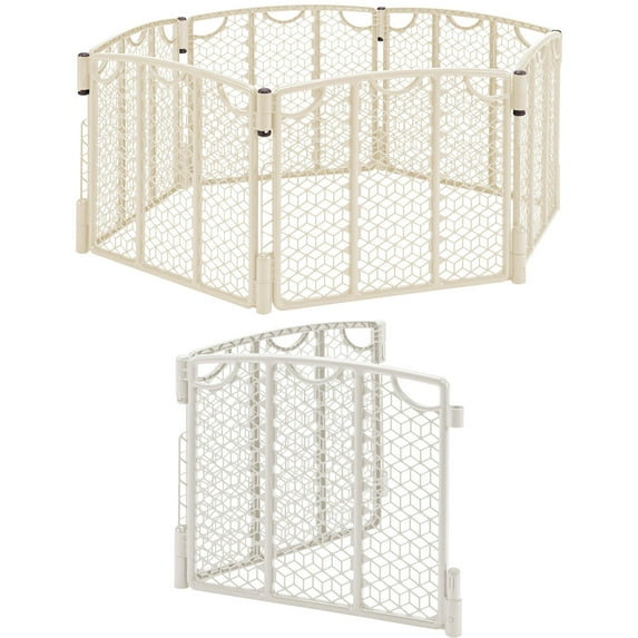 Evenflo Versatile Play Space Gate, Cream & 2-Panel Extension Value Bundle