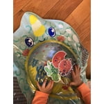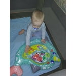 Six floating pals move when baby pats this colorful, unisex playmat from Infantino. Perfect for tummy time and high chair play! Just fill with water and let the fun begin. Characters float and move as baby bats and presses the mat. Extra large, fillable water mat for tummy time and sensory play complete with squishy tail and safety edges for interactive and mess free water play while learning cause and effect. Mat helps baby to engage head and neck muscles while encouraging grasping and batting to refine motor skills with floating sea pals. Simply fill the outer edge with air, and the inner mat with water until it reaches the fill line then drain and deflate for compact storage or on-the-go entertainment.