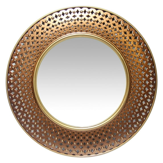 The Infinity Instruments Bolly Wall Mirror brings an eclectic flair to your home. Made from lightweight plastic and glass, this nearly 16-inch décorative mirror includes hanging hardware and a year warranty. The warm copper and gold on the frame's intricate lattice and raised circles pattern will revive tired walls in a snap.