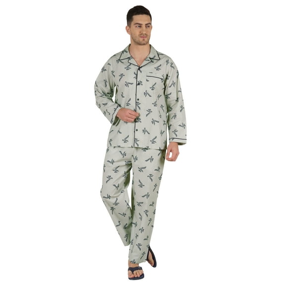 Inkmeso Men's Cotton PJs Printed Sleepwear Lounge Wear Top & Bottom Pajama Set