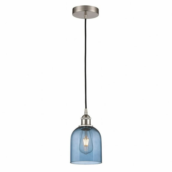 Innovations Lighting-616-1P-SN-G558-6BL-Collection: Bella, Material: Steel, Finish Color: Brushed Satin Nickel, Width: 5.5", Height: 9.5", Length: 5.5", Chain Length: 120", Lamping Type: Incandescent, Number Of Bulbs: 1, Wattage: 100 Watts, Dimmable: Yes, Moisture Rating: Damp Rated, Desc: Innovation at its finest and a true game changer. Edison marries the best of our Franklin and Ballston collections to give you versatility of design and uncompromising construction.� Edison fixtures are industrial-inspired that can be customized with glass or metal shades from both the Franklin and Ballston collections. Our process of handblowing the glass shade makes each product unique and creates an artisanal look. / UL/CUL Damp Rated / Rated for 100 watt maximum / Compatible with Incandescent, LED, Fluorescent and Halogen bulbs / Includes 120" of textured cord that can be cut to your desired hanging length. / Sloped ceiling compatible. ,-Bella - 1 Light Cord Hung Mini Pendant In Industrial Style-9.5 Inches Tall and 5.5 Inches Wide-Brushed Satin Nickel Finish-Princess Blue Glass Color