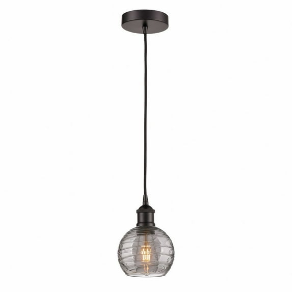 Innovations Lighting-616-1P-OB-G1213-6SM-Collection: Athens Deco Swirl, Material: Brass, Finish Color: Oil Rubbed Bronze, Width: 6", Height: 8.75", Length: 6", Lamping Type: Incandescent, Number Of Bulbs: 1, Wattage: 60 Watts, Cri: 99, Color Temperature: 2200 Kelvin, Lumens: 220, Dimmable: Yes, Moisture Rating: Damp Rated, Desc: Innovation at its finest and a true game changer. Edison marries the best of our Franklin and Ballston collections to give you versatility of design and uncompromising construction.� Edison fixtures are industrial-inspired that can be customized with glass or metal shades from both the Franklin and Ballston collections. Includes 10 feet of fabric cord / Sloped ceiling compatible / 4.75 inch steel canopy / Rated for 100 watt maximum / UL/CUL Damp Rated / Compatible with Incandescent, LED, Fluorescent and Halogen bulbs. ,-Athens Deco Swirl - 1 Light Mini Pendant In Industrial Style-8.75 Inches Tall and 6 Inches Wide-Oil Rubbed Bronze Finish-Light Smoke Deco Swirl Glass Color -Traditional Installation