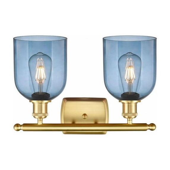 Bulbs (incandescent, LED, fluorescent, or halogen up to 100 watts each). , - - Bella - 2 Light Bath Vanity In Industrial Style-10.5 Inches Tall and 15.5 Inches Wide-Satin Gold Finish-Princess Blue Glass Color -- Manufacturer: Innovations Lighting