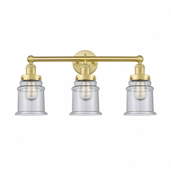 - Optional glass or metal shades from Franklin or Ballston collections for customization. , - - Canton - 3 Light Bath Vanity In Industrial Style-12.75 Inches Tall and 24 Inches Wide-Satin Gold Finish-Seedy Glass Color -