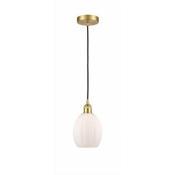 Collection: Eaton, Material: Brass, Finish Color: Satin Gold, Width: 5.5", Height: 10.75", Length: 5.5", Lamping Type: Incandescent, Number Of Bulbs: 1, Wattage: 60 Watts, Cri: 99, Color Temperature: 2200 Kelvin, Lumens: 220, Dimmable: Yes, Moisture Rating: Damp Rated, Desc: Innovation at its finest and a true game changer. Edison marries the best of our Franklin and Ballston collections to give you versatility of design and uncompromising construction.� Edison fixtures are industrial-inspired that can be customized with glass or metal shades from both the Franklin and Ballston collections. Includes 10 feet of fabric cord / Sloped ceiling compatible / 4.75 inch steel canopy / Rated for 100 watt maximum / UL/CUL Damp Rated / Compatible with Incandescent, LED, Fluorescent and Halogen bulbs. ,-Eaton - 1 Light Cord Hung Mini Pendant In Industrial Style-10.75 Inches Tall and 5.5 Inches Wide-Satin Gold Finish-Matte White Glass Color-Restoration,Vintage,Urban,Farmhouse,Transitional,Traditional,Early Electric,Industrial,Mid-century,Pendant Lighting,Mini Pendants,LED Compatible,Dimmable,Clear Glass,Adjustable Cords,Damp locations,Vaulted Ceiling Compatible,Sloped Ceiling Compatible-616-1P-SG-G81