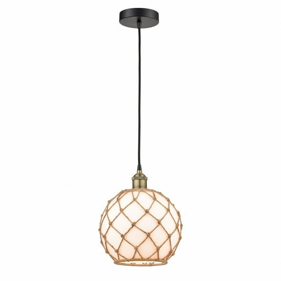 Innovations Lighting-616-1P-BAB-G121-10RB-Collection: Farmhouse Rope, Material: Rope, Finish Color: Black Antique Brass, Width: 10", Height: 12.75", Length: 10", Lamping Type: Incandescent, Number Of Bulbs: 1, Wattage: 60 Watts, Cri: 99, Color Temperature: 2200 Kelvin, Lumens: 220, Dimmable: Yes, Moisture Rating: Damp Rated, Desc: Innovation at its finest and a true game changer. Edison marries the best of our Franklin and Ballston collections to give you versatility of design and uncompromising construction.� Edison fixtures are industrial-inspired that can be customized with glass or metal shades from both the Franklin and Ballston collections. Includes 10 feet of fabric cord / Sloped ceiling compatible / 4.75 inch steel canopy / Rated for 100 watt maximum / UL/CUL Damp Rated / Compatible with Incandescent, LED, Fluorescent and Halogen bulbs. ,-Farmhouse Rope - 1 Light Mini Pendant In Industrial Style-12.75 Inches Tall and 10 Inches Wide-Black Antique Brass Finish-White/Brown Rope Glass Color -Traditional Installation