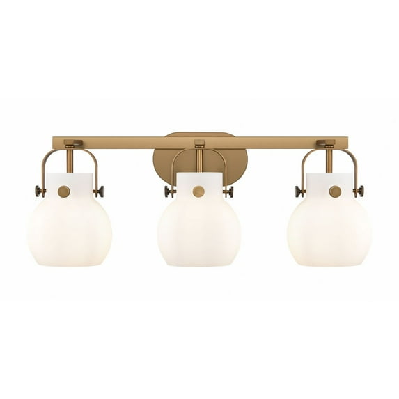 423-3W-BB-G410-6WH-Innovations Lighting-Pilaster II Sphere - 3 Light Bath Vanity-10.13 Inch Tall and 26.5 Inch Wide-Brushed Brass Finish-Matte White