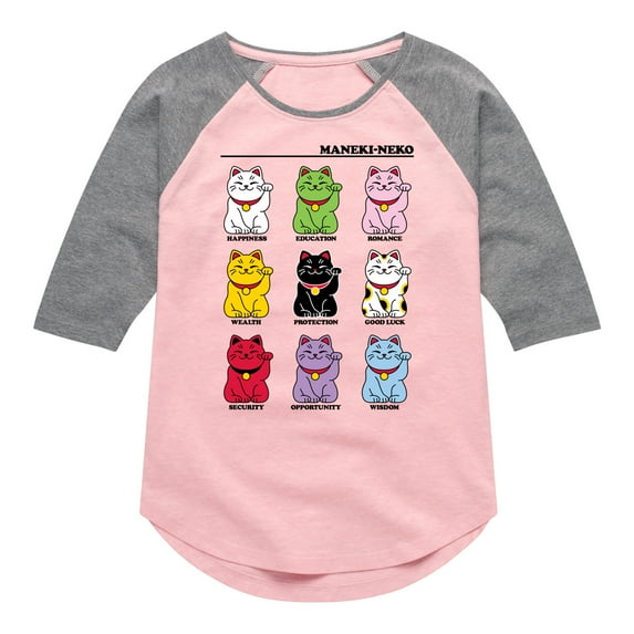 Instant Message - Lucky Cat - Toddler & Youth Girls Raglan Graphic T-Shirt